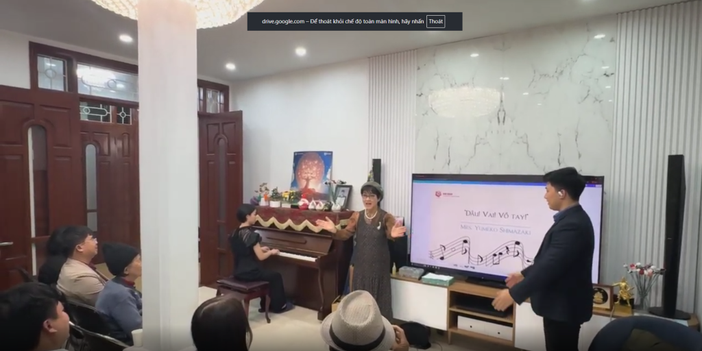 Buổi giao lưu diễn ra tại tư gia của PGS.TS Nguyễn Đăng Minh có sự hiện diện của bà Shimazaki và cháu gái, nghệ sĩ đàn bầu Thế Vinh, ca sĩ Hải Yến, nghệ sĩ piano Hạnh Như, cùng tập thể các nhà giáo dục GKM và các phụ huynh. Không gian sự kiện được dẫn dắt bằng những trải nghiệm văn hóa, giáo dục và đối thoại gia đình, tạo nên sự kết nối tự nhiên, không hình thức (Ảnh: GKM).